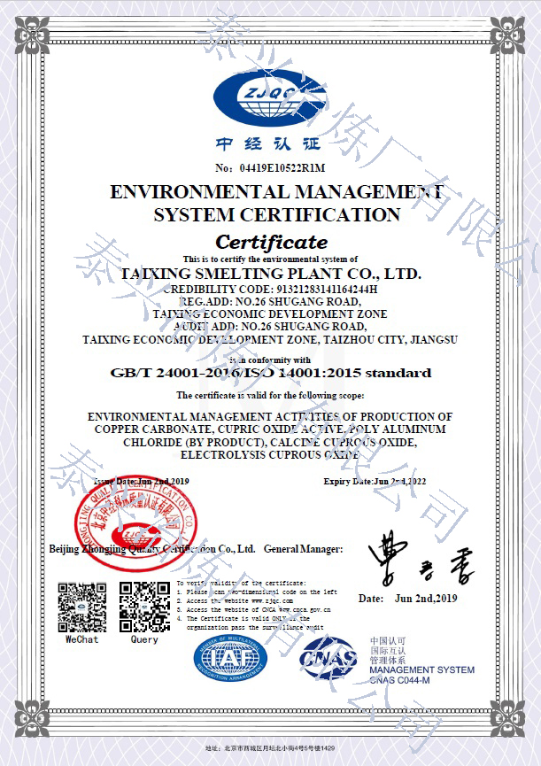 自主研發的空氣二次氣提生產高純堿式碳酸銅,填補國內空白,獲得泰州市科技進步二等獎